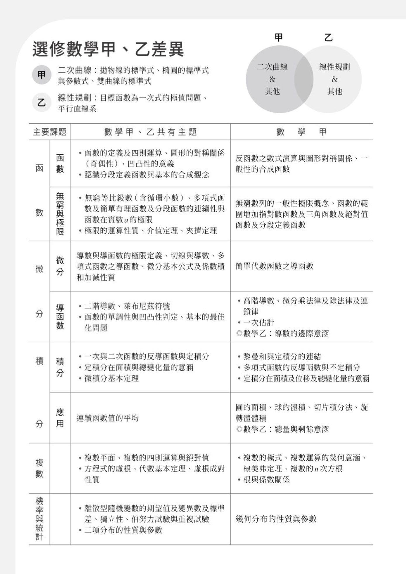 三、範圍從高一高二、高三選修,到分科測驗全範圍