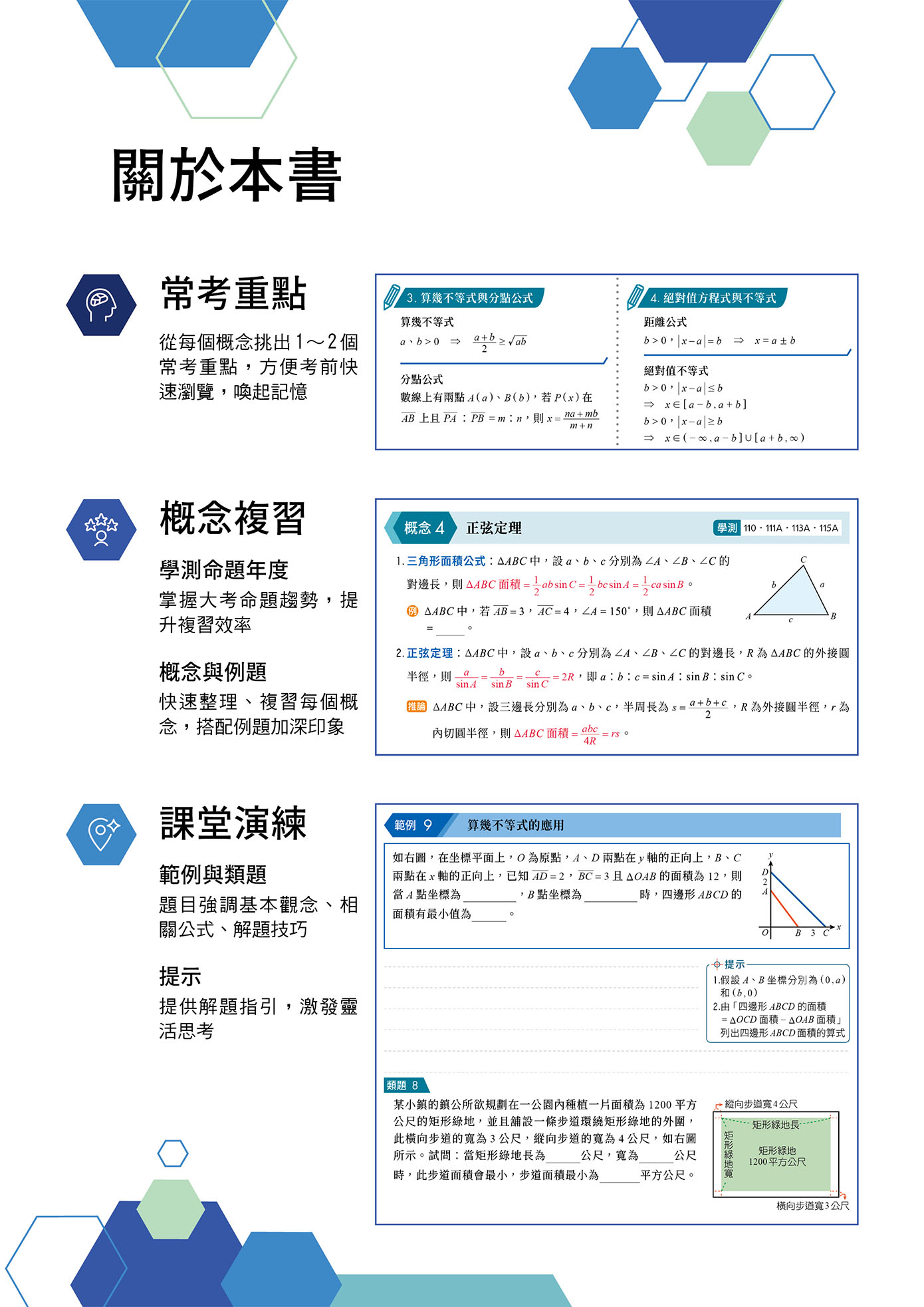 一、常考重點:呈現常考重點與公式,並標示學測命題年度,考前好複習