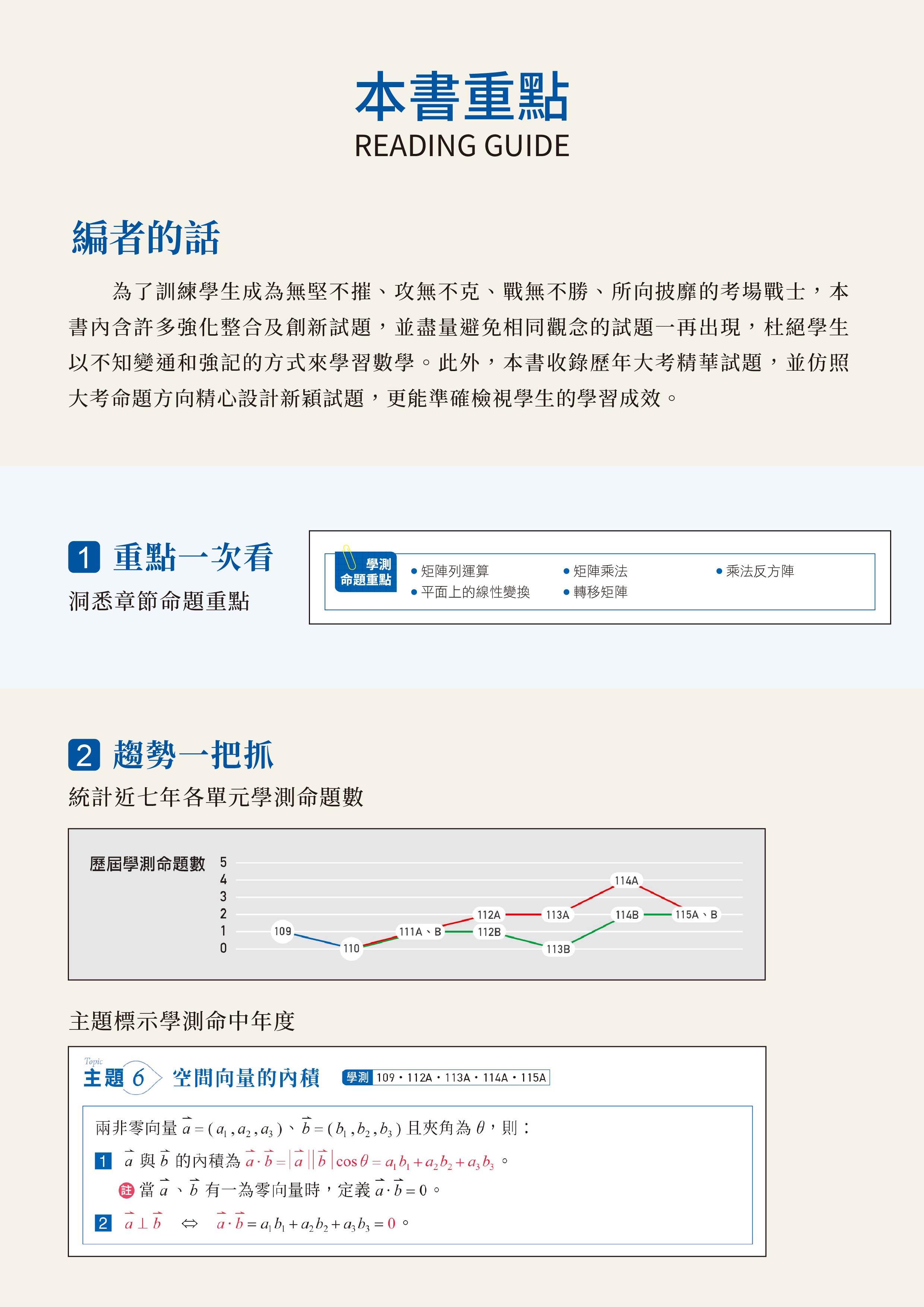 一、複習要點:整理課程重點並標示學測命題年度,練習題幫助學生快速複習