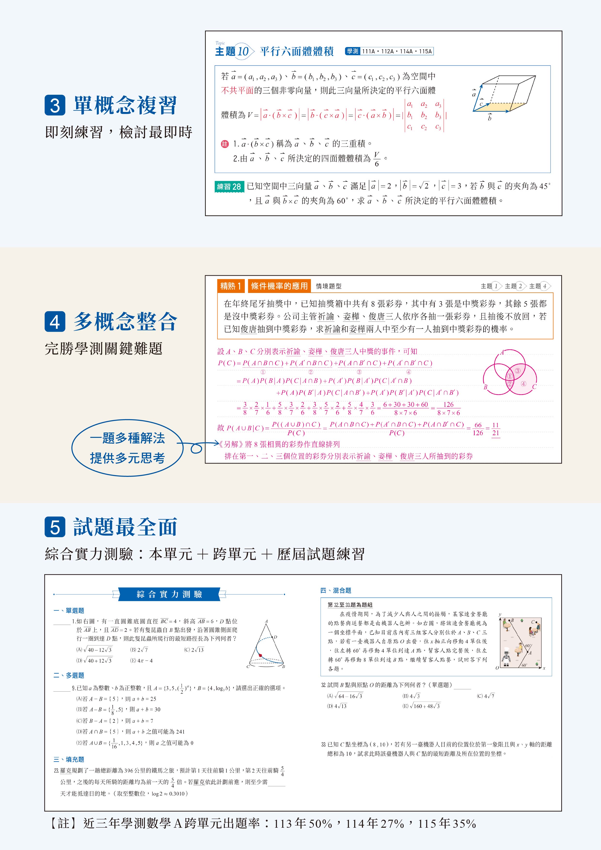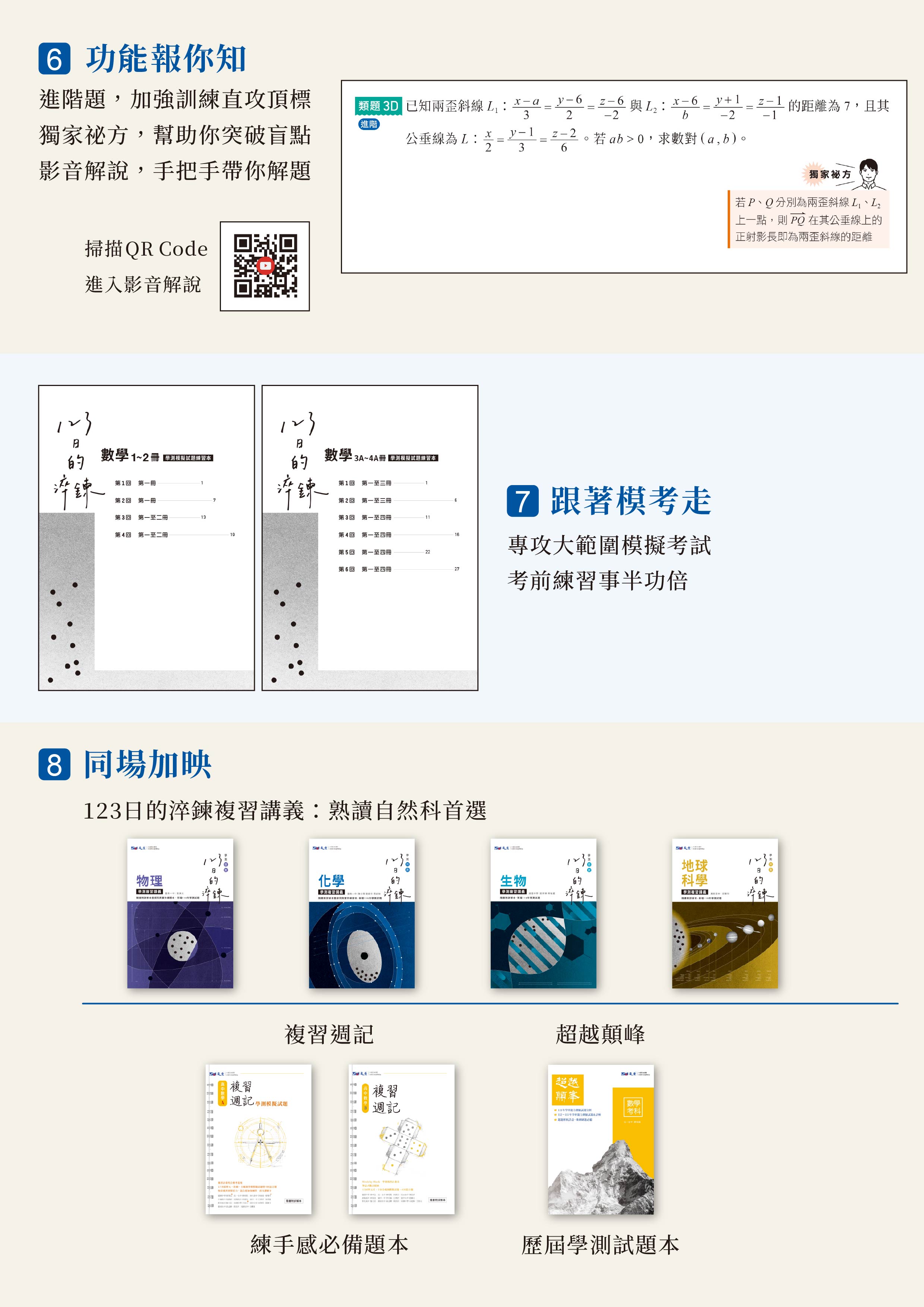 五、學測模擬試題練習本:共6回,仿學測設計模擬試題(含混合題),配合模擬考前練習使用