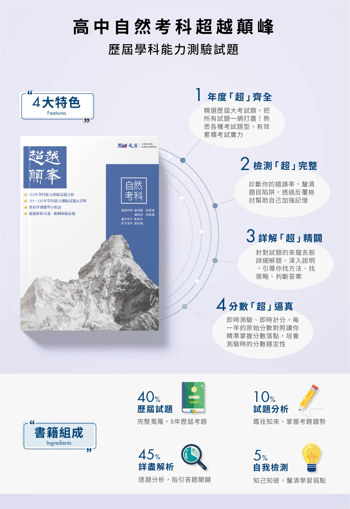 在找自然學測歷屆試題嗎?考前練題首選超越顛峰!